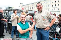 12 Autos vom Linzer Landyclub umrahmten die Aufstellung am Hautplatz. Zum Abschluss ging es zum Ripperlessen im "Golden Pub&Snack", wo Harry und Lukas vor 3 Jahren die Idee zu dieser Reise hatten.