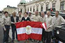 Frau Manuela Kovarik, Generalsekretär-Stellvertreterin des ÖOC übergibt uns die Österreichische Olympiafahne und den ÖOC-Wimpel. Über Athen, dem Austragungsort der Olympischen Siele 2004, werden wir diese Fahne auf dem Weg der alten Seidenstraße zu den Olympischen Sommerspielen 2008 nach Peking bringen.