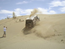 Weiter geht es durch die Sandwüste Karakum zur usbekischen Grenze. Bei einem Ausflug abseits der Straße testen wir unsere Bergeausrüstung im tiefen Wüstensand – ein wahrhaft spannendes Erlebnis.