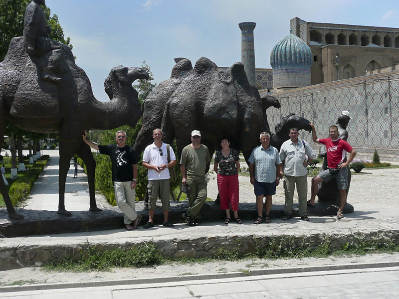 Direkt am Registanplatz befindet sich auch das Seidenstraßendenkmal an dem wir natürlich ein obligatorisches Gruppenfoto schießen.