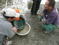 Unterwegs stoßen wir auf Goldsucher, die noch wie im vorigen Jahrhundert Gold in der Pfanne waschen und mitten im Nirgendwo hoffen, das große Glück zu machen.