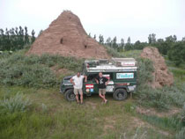 Wir queren den chinesischen Teil der Wüste Gobi, die hier über große Strecken bewässert und kultiviert ist. Der nächste Stopp in Datong, einer 5 Millionenstadt bietet wenig Sehenswertes. Hauptsächlich Staub, Lärm und Schmutz sind wohl die Zeichen der rasanten industriellen Entwicklung - aber lauter freundliche Menschen sprechen uns auf der Straße an und sind neugierig, mehr über uns zu erfahren. Zum Mittagessen besuchen wir ein Lokal, wo uns die Besitzerin aus lauter Freude über die ersten Ausländer in ihrem Lokal ein Lied vorsingt. Für unsere Ohren klingt es sehr fremdartig und auf Dauer ist es nur schwer auszuhalten.